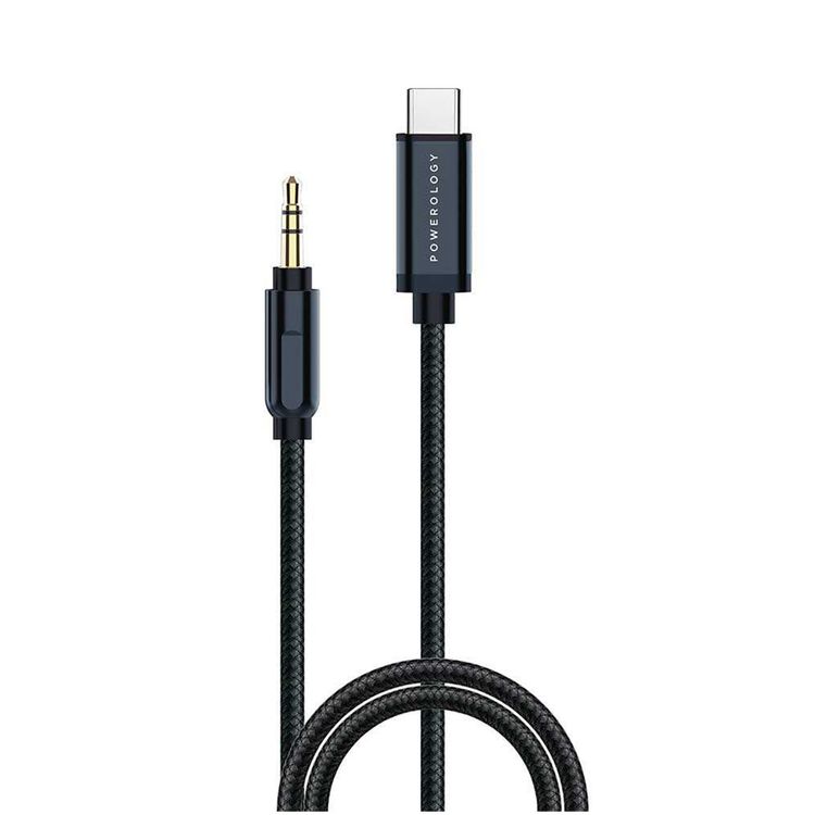 Powerology Braided Audio Type-C to 3.5mm AUX Cable with 1.2m Length, Universal Compatibility, Seamless Music Streaming, 5000 Bends Lifespan - Gray