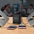 Powerology Volt-X Smart Desktop GaN Charger with PD 140 W, QC 18W, Laptop Charger, UK 3-Pin Plug, 300W Total Output, ×1 USB-A & ×5 USB-C Ports, Multiple Device Charging, Safe & Efficient Charging - Black