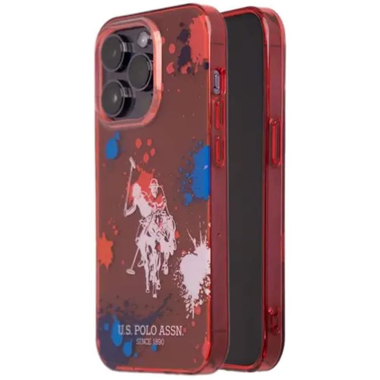 USPA PC/TPU Case with Splatter Pattern & Horse Logo iPhone 14 Pro Compatibility - Red
