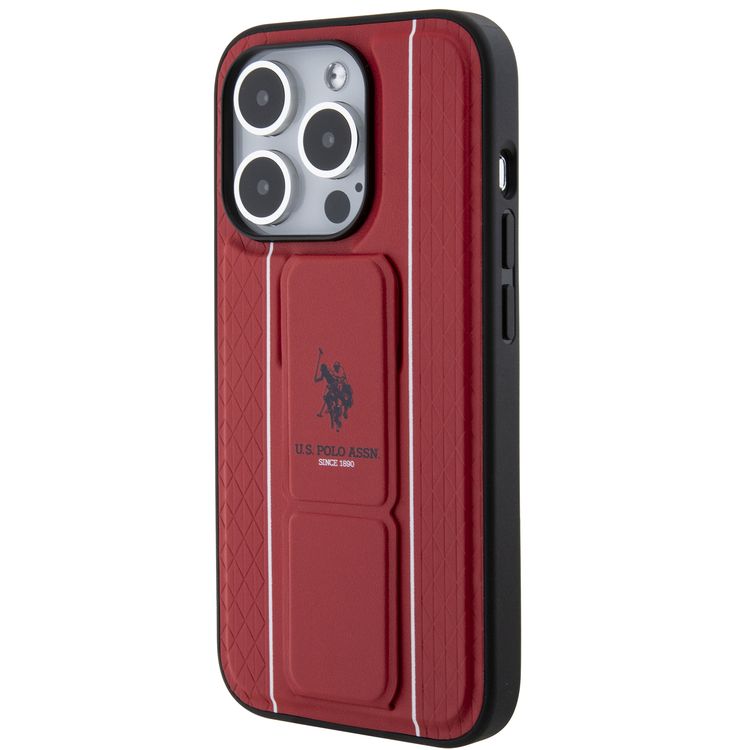 U.S.Polo Assn. PU Leather Textured Pattern Grip Stand Case for iPhone 15 Series - Red - iPhone 15 Pro