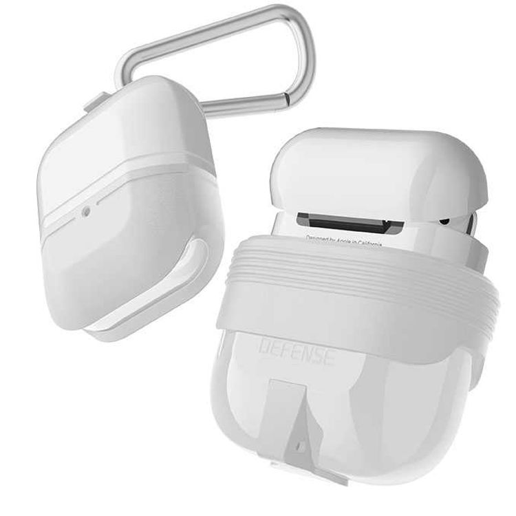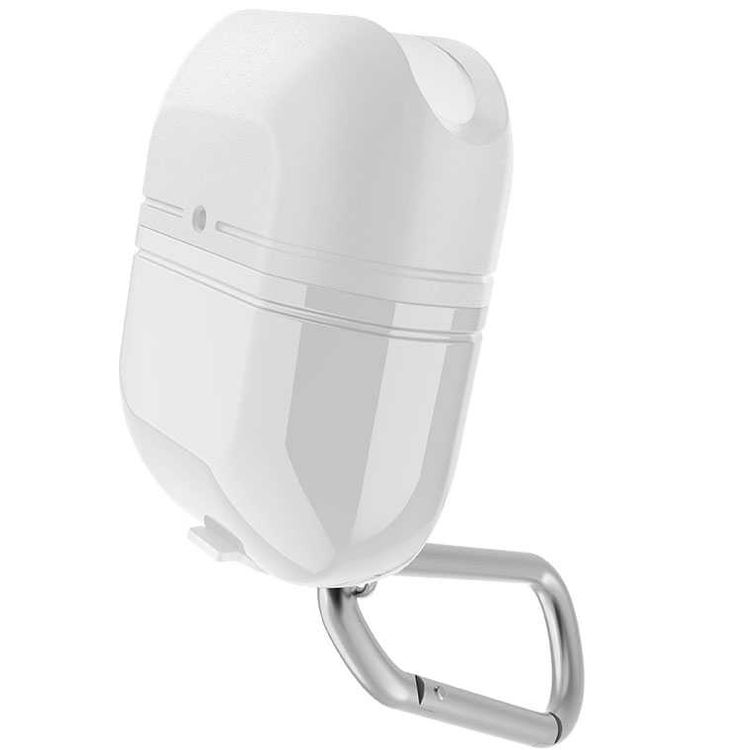 X-Doria Defense Journey Case for AirPods 1 & 2 with Detachable Carabiner & Loop, TPU & Silicone Material, Water & Dust Resistant, 360-Degree Full Protection, Anti-Scratch - White
