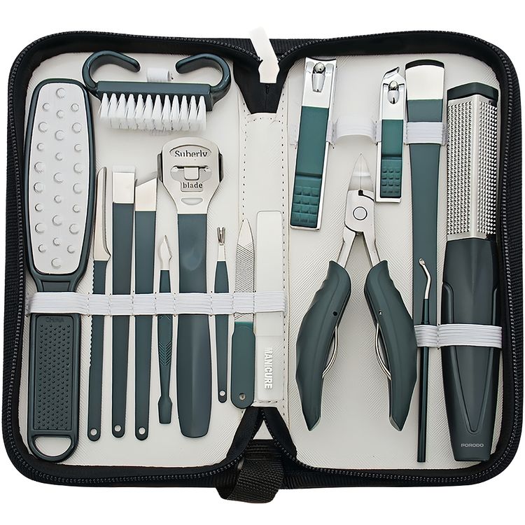 Porodo 16-in-1 Portable Nail Clipper Set for Manicure and Pedicure with High-Precision Tools, Portable and Lightweight, Multi-Use Functionality, Ergonomic Design - Green