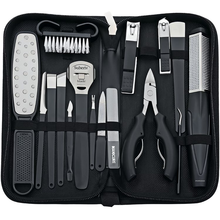 Porodo 16-in-1 Portable Nail Clipper Set for Manicure and Pedicure with High-Precision Tools, Portable and Lightweight, Multi-Use Functionality, Ergonomic Design - Black