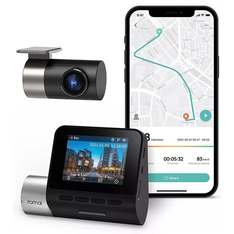 70mai Smart Dash Cam Pro Plus Sets A500S, 5Mp Resolution, Free Wifi, 24Hours Parking Monitor, 140 Degree Wide View Angle, Dual Video Recording