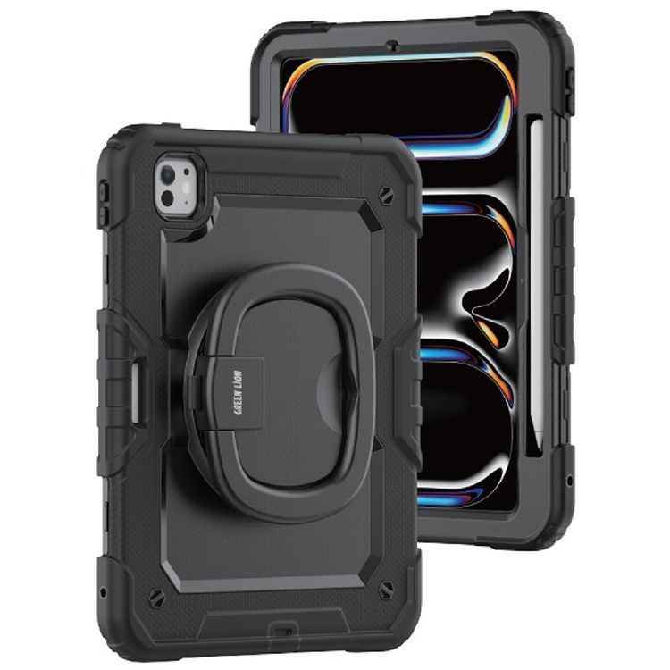 Geen Lion Trioshield iPad Pro 11 Case, Pencil Holder, Adjustable Handle, Shockproof - Black