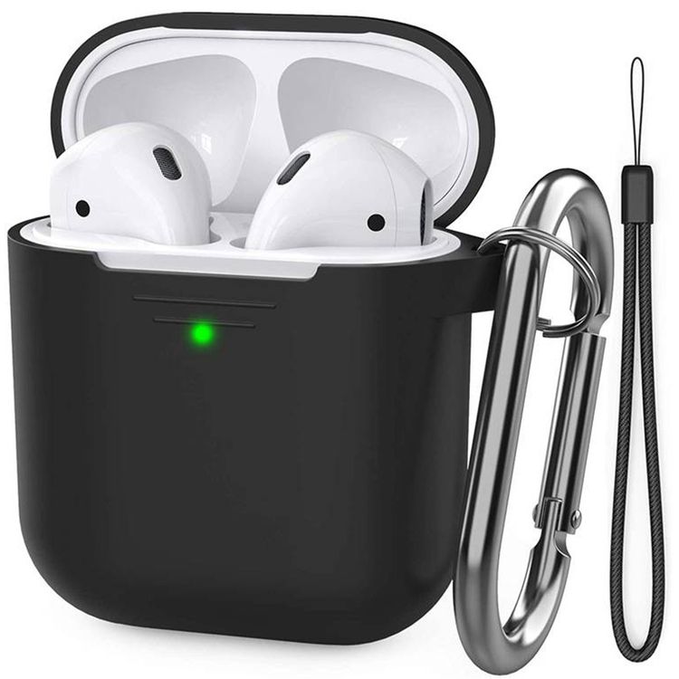 Ahastyle Duotone Premium Silicone Case Compatible for AirPods 1/2 - Front LED Visible - Dirt & Scratch Resistance - Shock Absorption Drop Protection Cover - Black