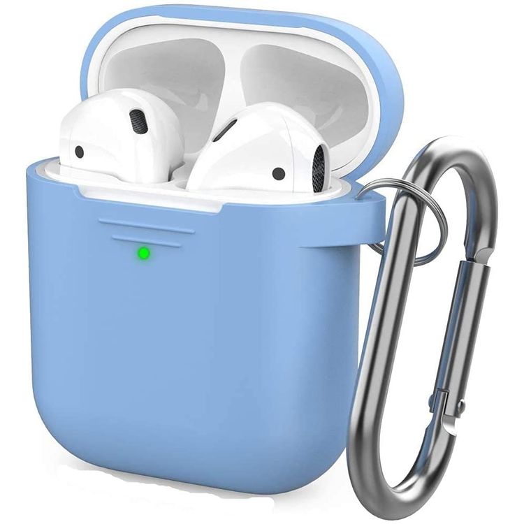 AhaStyle Keychain Silicone Case Compatible w/ Airpods, Premium Silicone, Front LED Visible, Slim Fit, 1.33mm Thickness, Impact Resistant, Drops & Scratch Resistant - Sky Blue