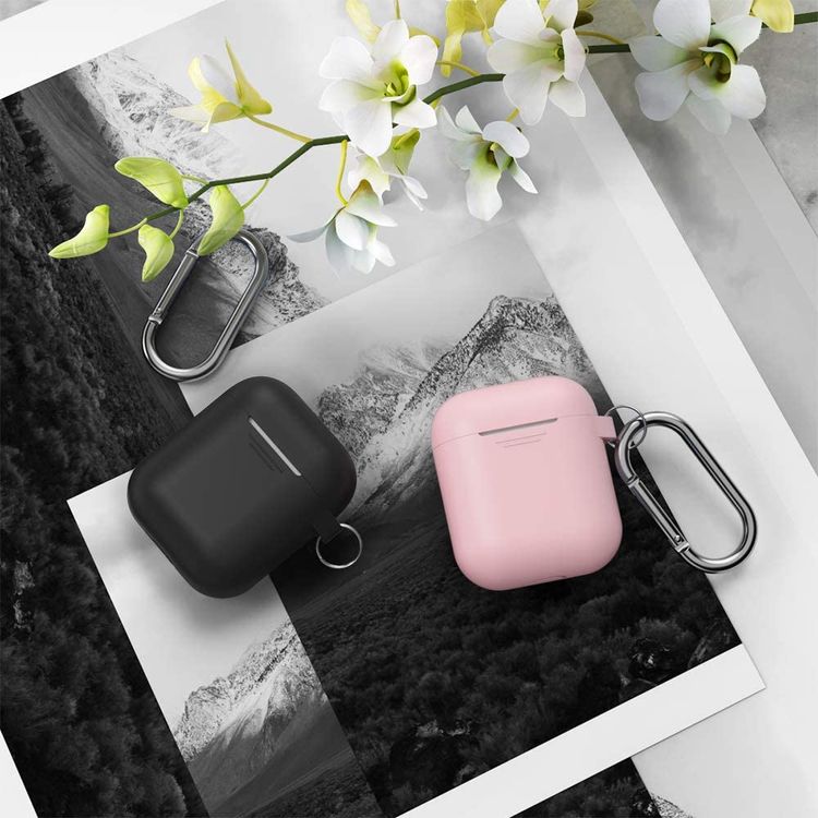 AhaStyle Keychain Silicone Case with Anti-Lost Ring for AirPods 1/2 Generation, Drop Resistant, Dustproof and Absorbing Protective Cover with Hang Case Pink