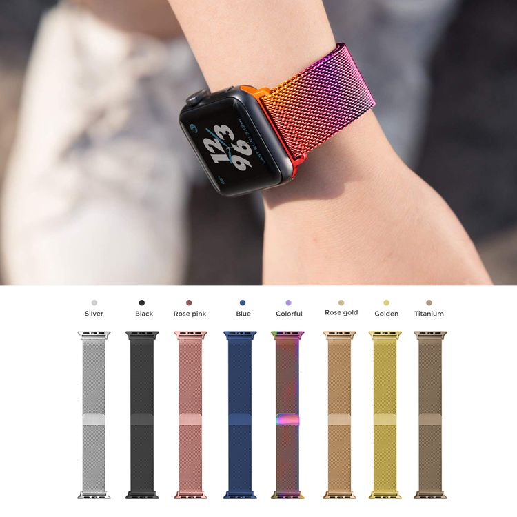 AhaStyle Magnetic Stainless Steel Milanese Mesh Loop Strap for Smartwatch - Lightweight Design - Replacement Wrist Band Strap Compatible for Apple Watch 42 / 44mm - Colorful