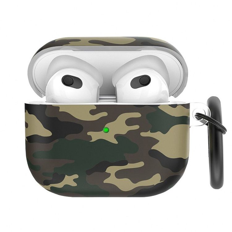 AhaStyle Premium TPU IMD Patterns Keychain AirPods Case Compatible for AirPods 3 Suitable with Wireless Charging - Jungle Camouflage