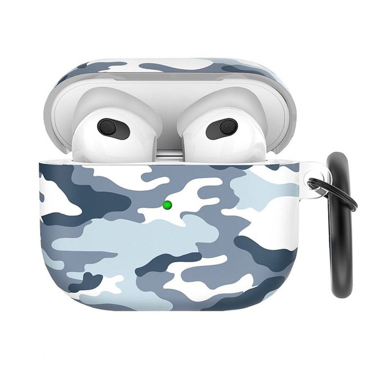 AhaStyle Premium TPU IMD Patterns Keychain AirPods Case Compatible for AirPods 3 Suitable with Wireless Charging - Navy Camouflage