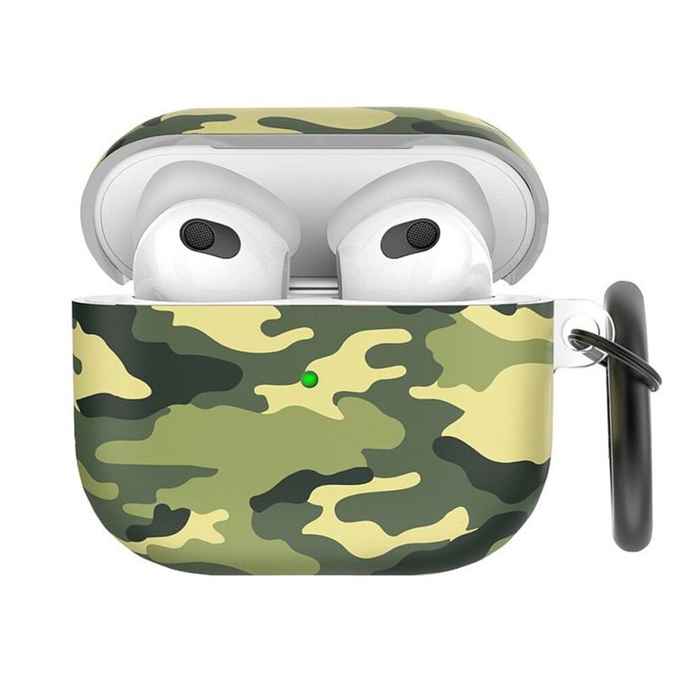 AhaStyle Premium TPU IMD Patterns Keychain AirPods Case Compatible for AirPods 3 Suitable with Wireless Charging - Universal Camouflage