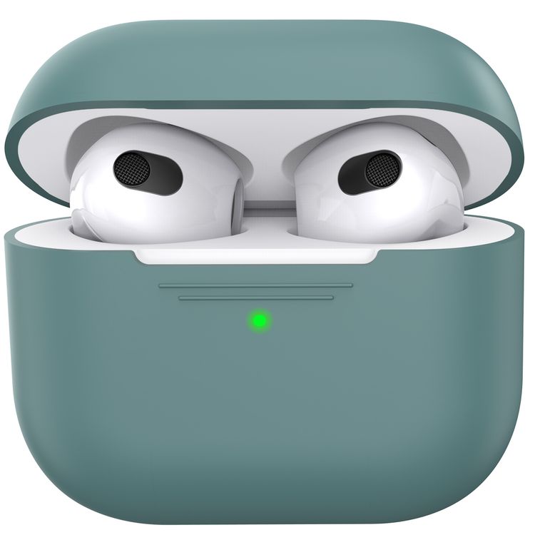 AhaStyle PT176-MG Full Cover Silicone Case for Airpods 3 Drop Shock Protection, Front LED Visible Cover with Carabiner Suitable with Wireless Chargers - Green