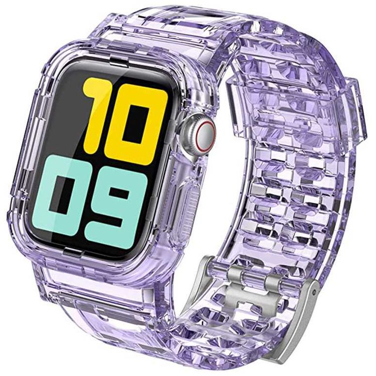 AhaStyle Transparent TPU Watch Band with Rugged Bumper Case Compatible for 38 / 40mm, Fit & Comfortable Replacement Wrist Band, Adjustable Straps - Lavender