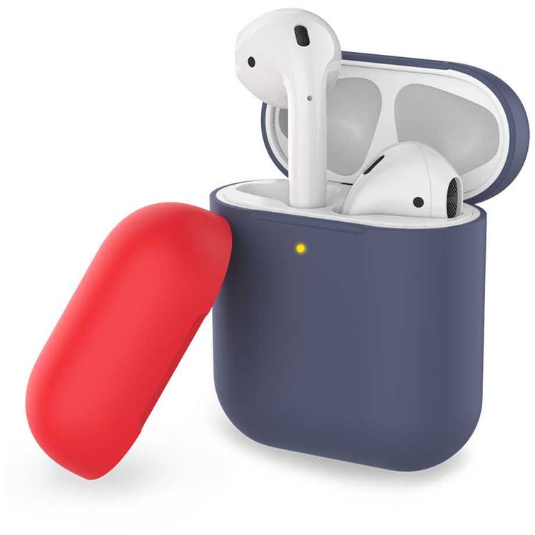 AhaStyle Two Toned Silicone Case Compatible for AirPods 1/2, Scratch Resistant, Shock Absorption, Drop Protection, & Dustproof Protective Silicone Cover - Navy Blue / Red