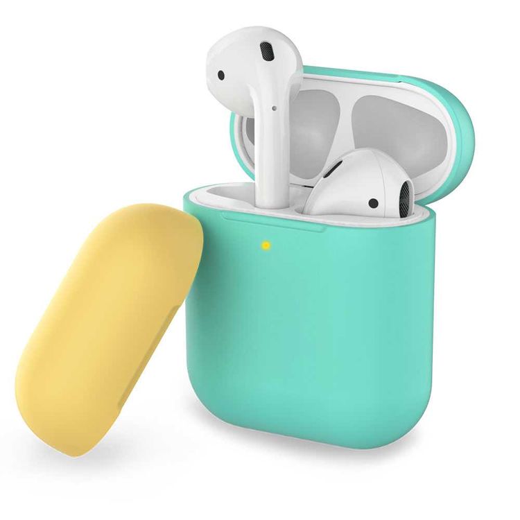 AhaStyle Two Toned Silicone Case Compatible for AirPods 1/2, Scratch Resistant, Shock Absorption, Drop Protection, & Dustproof Protective Silicone Cover - Mint Green / Yellow