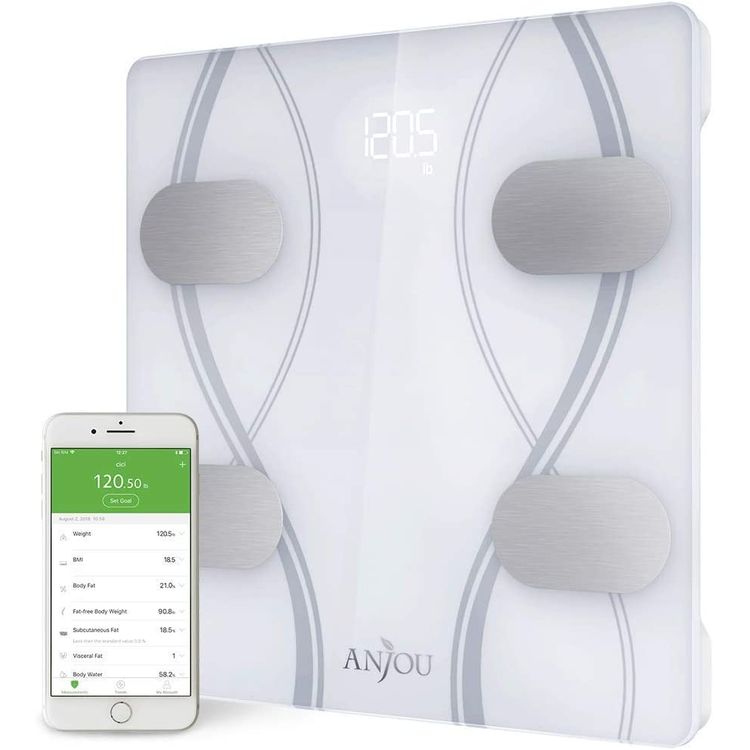 Anjou Body Weight Scale, Bluetooth Smart Wireless High Precision Digital Body Weight Scale / Composition Analyzer / Health Monitor with iOS and Android App for Body Weight / Fat / Water / BMI / BMR / Muscle Mass - White