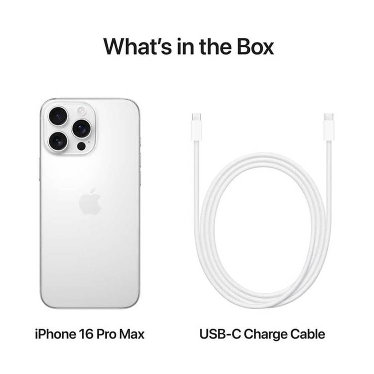 Apple iPhone 16 Pro Max with 512GB Capacity, TDRA Version, 6.9‑inch Screen Size, USB-C Connector Type, 6‑Core CPU, 6‑Core GPU, 5G Network Technology, Splash, Water & Dust Resistant - White Titanium