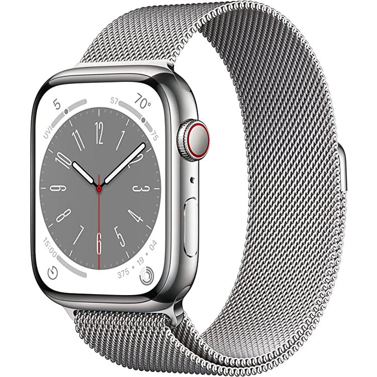 Apple watch series 8 (GPS + Cellular) - Silver Stainless Steel Case, Silver Milanese Loop - 45 MM