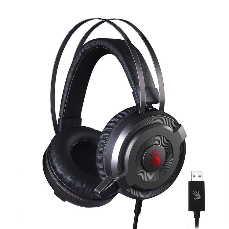 Bloody G520S 2.0 Gaming Headphones with Noise-Canceling Mic, Auto-Adjusting Headband, and 7-Color LED light - Black