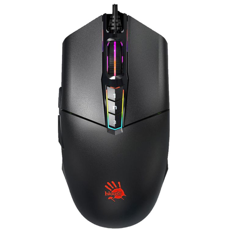 Bloody P91 Pro RGB Gaming Mouse with Dual-Injection Rubber Wheel, Adjustable Resolution Up to 16000CPI, 1 Millisecond Key Response Time, Macro Setting - Black
