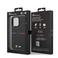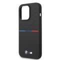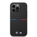 BMW M Collection Liquid Silicone Case Printed UV Varnish Pattern Tricolor Line & Logo iPhone 14 Pro Max Compatibility - Black
