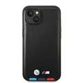 BMW M Collection PU Leather Case with Hot Stamped Tricolor Parts and Printed Logo iPhone 14 Plus Compatibility - Black