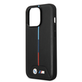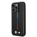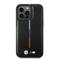 BMW M Collection Quilted PU Case with Hot Stamped Tricolor Stripe and Printed Logo iPhone 14 Pro Max Compatibility - Black