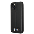 BMW M Collection Quilted PU Case with Hot Stamped Tricolor Stripe and Printed Logo iPhone 14 Plus Compatibility - Black