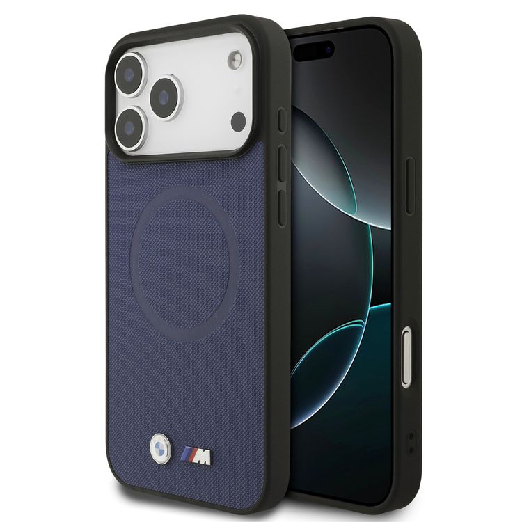 BMW MagSafe Full Wrapped Leather Case with Metal Logos for iPhone 17 Pro, Sustainable Packaging, Easy Snap-On Design, Slim Profile, Drop Protection - Navy