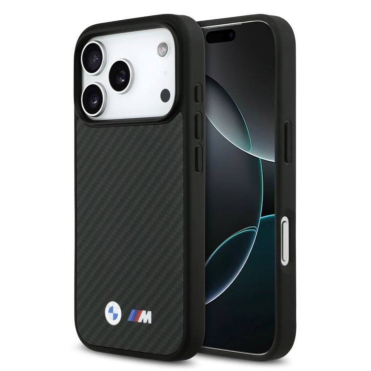 BMW MagSafe Kevlar Case with Metal Logos for iPhone 17 Pro, Drop Protection, Sustainable Packaging, Slim Profile, Easy Snap-On Design - Black