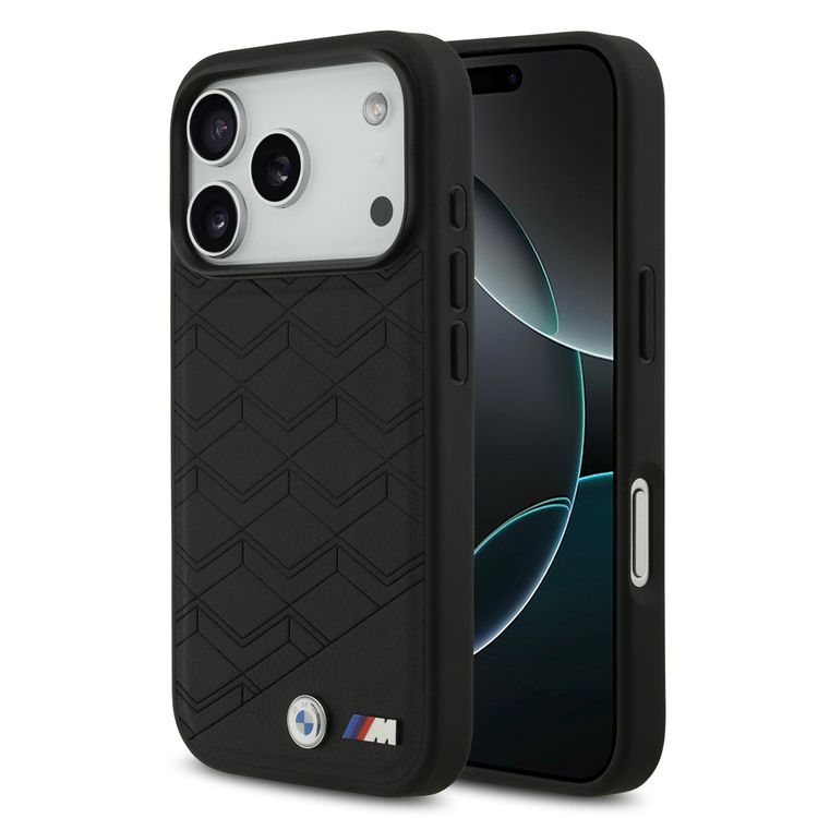 BMW MagSafe PU Seat-Shaped Leather Case with Metal Logos for iPhone 17 Pro Max, Slim Profile, Easy Snap-On Design, Sustainable Packaging, Drop Protection - Black