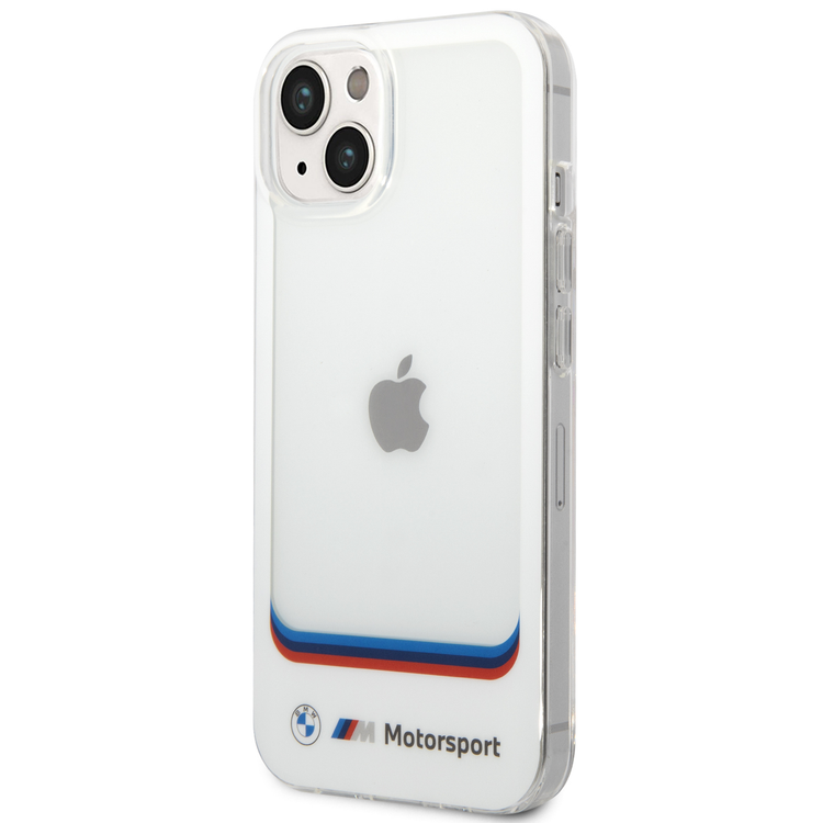 BMW Motorsport Collection PC/TPU IML Case Big Square Transparent Area and Printed Bottom Logo Compatible wit iPhone 14 - White