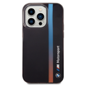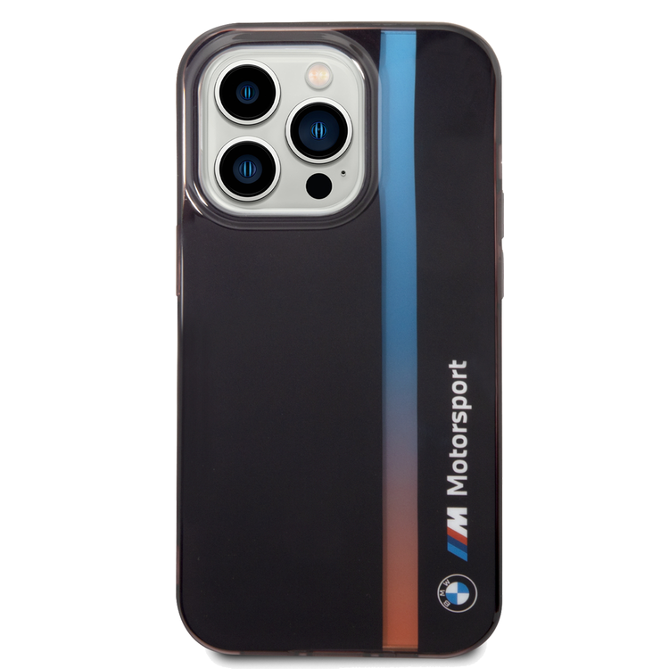 BMW Motorsport Collection PC/TPU IML Case with Printed Tricolor Fading Stripe iPhone 14 Pro Compatibility - Black