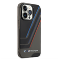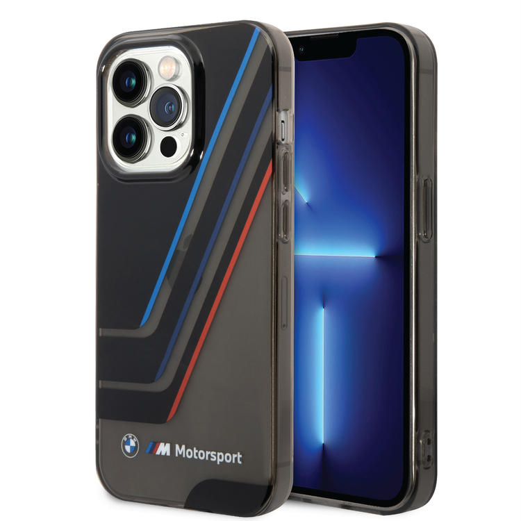 BMW Motorsport Collection PC/TPU IML Printed Tricolor Stripes, Translucent Zones Phone 14 Pro Max Compatibility - Black