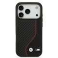 BMW PU Leather & Carbon Case with Colored Line Stitch for iPhone 17 Pro, Drop Protection, MagSafe Compatible, Sustainable Packaging, Easy Snap-On Design, Slim Profile - Black / Red