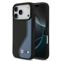 BMW PU Leather & Carbon Case with Colored Line Stitch for iPhone 17 Pro, Drop Protection, MagSafe Compatible, Sustainable Packaging, Easy Snap-On Design, Slim Profile - Black / Blue
