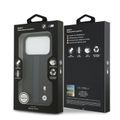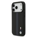 BMW PU Leather Case with Perforated Stripes & Metal Logos for iPhone 17 Pro, MagSafe Compatible, Sustainable Packaging, Drop Protection, Slim Profile, Easy Snap-On Design - Black / Blue