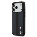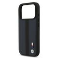 BMW PU Leather Case with Perforated Stripes & Metal Logos for iPhone 17 Pro, MagSafe Compatible, Sustainable Packaging, Drop Protection, Slim Profile, Easy Snap-On Design - Navy / Black