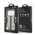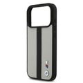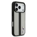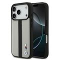 BMW PU Leather Case with Perforated Stripes & Metal Logos for iPhone 17 Pro, MagSafe Compatible, Sustainable Packaging, Drop Protection, Slim Profile, Easy Snap-On Design - Gray / Black