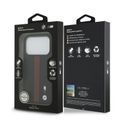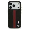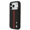 BMW PU Leather Case with Perforated Stripes & Metal Logos for iPhone 17 Pro, MagSafe Compatible, Sustainable Packaging, Drop Protection, Slim Profile, Easy Snap-On Design - Black / Red