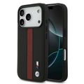 BMW PU Leather Case with Perforated Stripes & Metal Logos for iPhone 17 Pro Max, MagSafe Compatible, Sustainable Packaging, Drop Protection, Slim Profile, Easy Snap-On Design - Black / Red