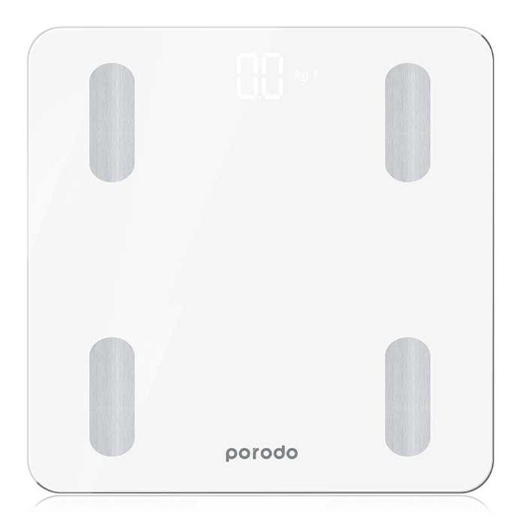 Body Weight Scale, Porodo PD-BF1321BT-WH Lifestyle Smart Bluetooth Full Body Fat Scale, Works with Bluetooth on iOS and Android- White