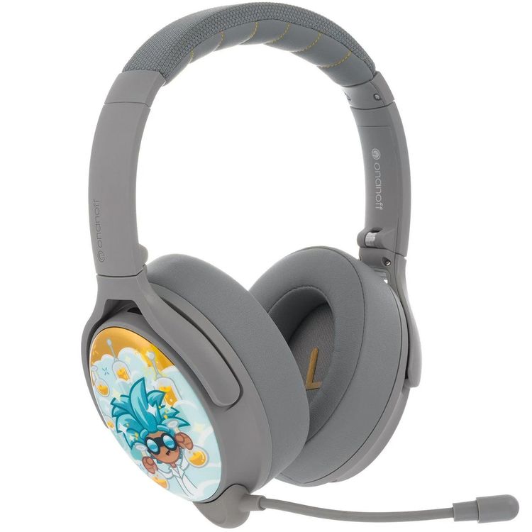 Buddyphones Cosmos Plus Kids Headphones with Wired and Wireless Connection, Active Noise Cancellation, Voice Enhancing StudyMode,Built-In Microphone - Gray