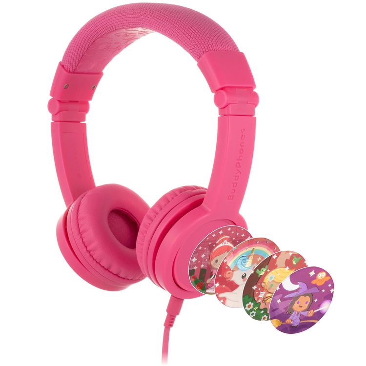 BuddyPhones Explore+ Wired Kids Headphones with Detachable Audio Cable, Foldable & Cushioned Headband, 4 Decorative Stickers, 8 Hours Battery Life - Rose Pink