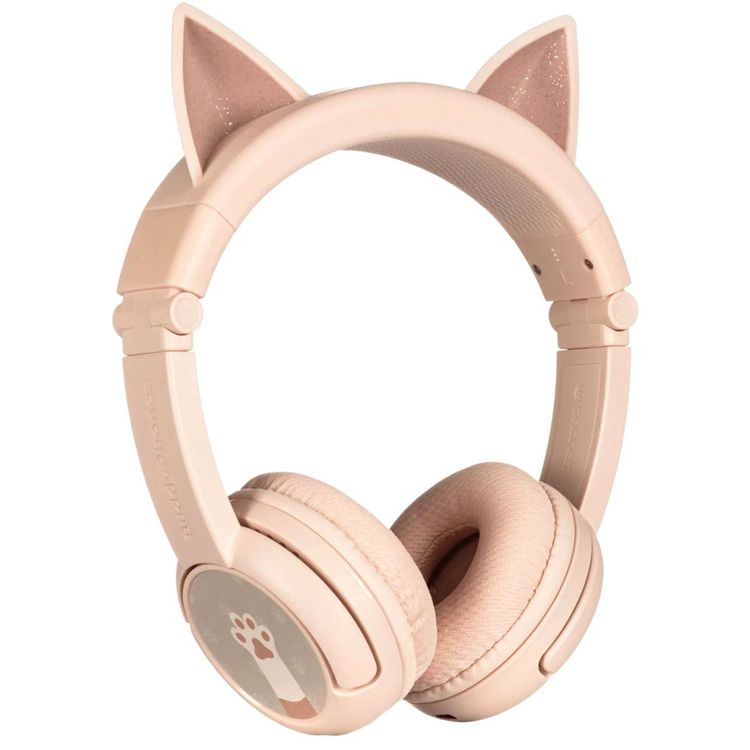 BuddyPhones Playears Kids Headphones with BuddyLink for Sharing, Adjustable Headband Size, Foldable Design, 24 Hours Battery Life - Cat