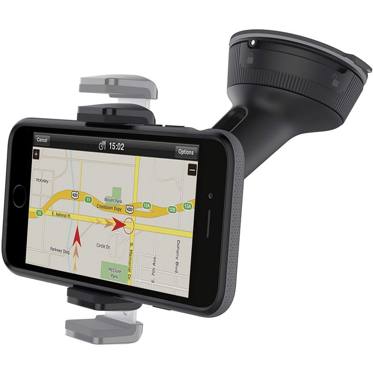 - Mount your phone in the car: Portable smartphone holder adheres securely to your windshield or dashboard (via an adapter) while firmly holding your phone.