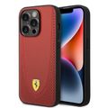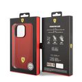 CG Ferrari Magsafe Compatibility Genuine Leather Hard Case with Curved Line Stitched iPhone 14 Pro Max Compatibility - Red