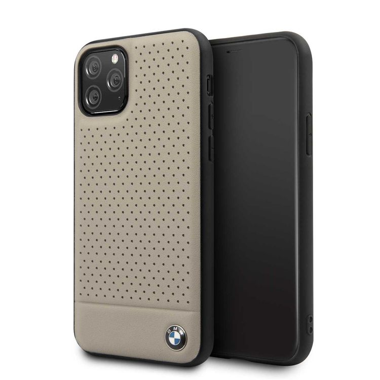 CG MOBILE, BMW Perforated Leather HardCase Compatible with iPhone 11 Pro, Premium Leather, Anti-Scratch, Camera Protection, Easy Access to All Ports - Grey