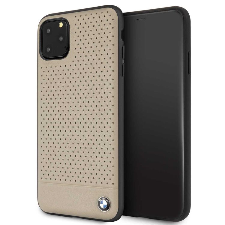 CG MOBILE, BMW Perforated Leather HardCase Compatible w/ iPhone 11 Pro Max, Premium Leather, Anti-Scratch, Camera Protection, Easy Access to All Ports - Grey